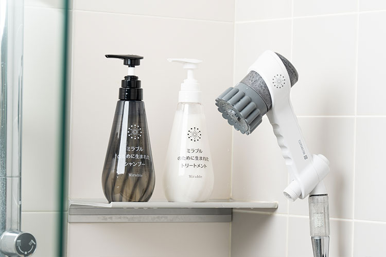 ミラブルのシャワーヘッドが作り出すウルトラファインバブルとシャンプーで毛髪と頭皮をしっかり洗浄。
